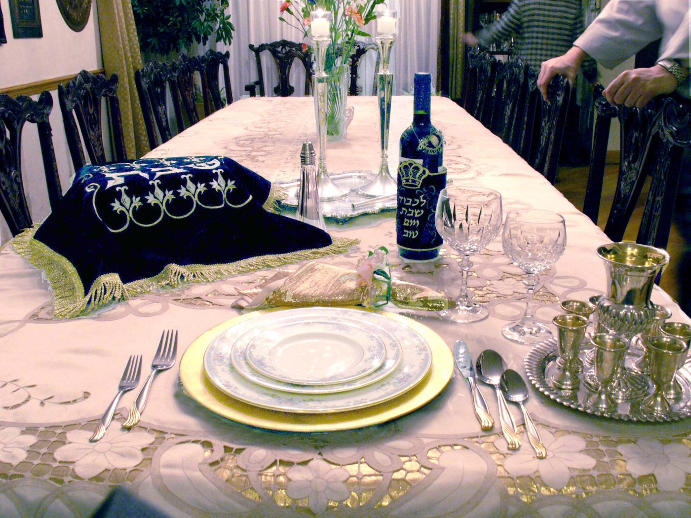 ∞ Use real dishes. At least for dinner on Shabbos we use our real dishes. We often use disposables for Shabbos lunch and Shalosh Suedos because we don’t have enough of our nice dishes and I can’t bear to add more dishes to the huge pile in the kitchen at that point. This one definitely requires someone who is willing to wash dishes after Shabbos (thank you, sweet hubby). Of course, for Pesach we use all disposables for the table. If you do use disposables, and want to buy them as cheaply as possible, see my post The advantage of buying paper goods online.
