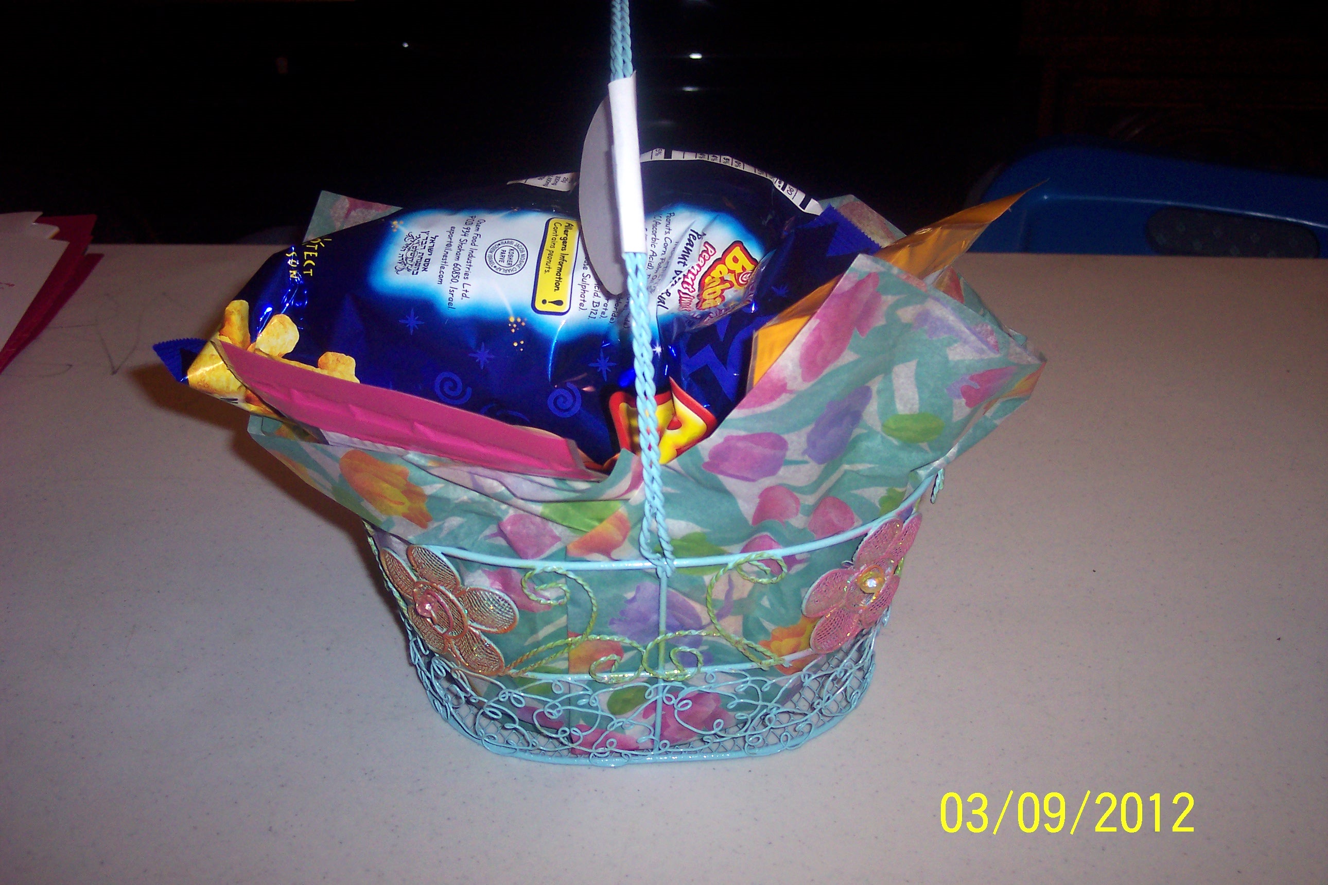 Our neighbors Charlotte and Joseph used a pretty Spring basket. I think it will look great on the table with napkins or benchers!
