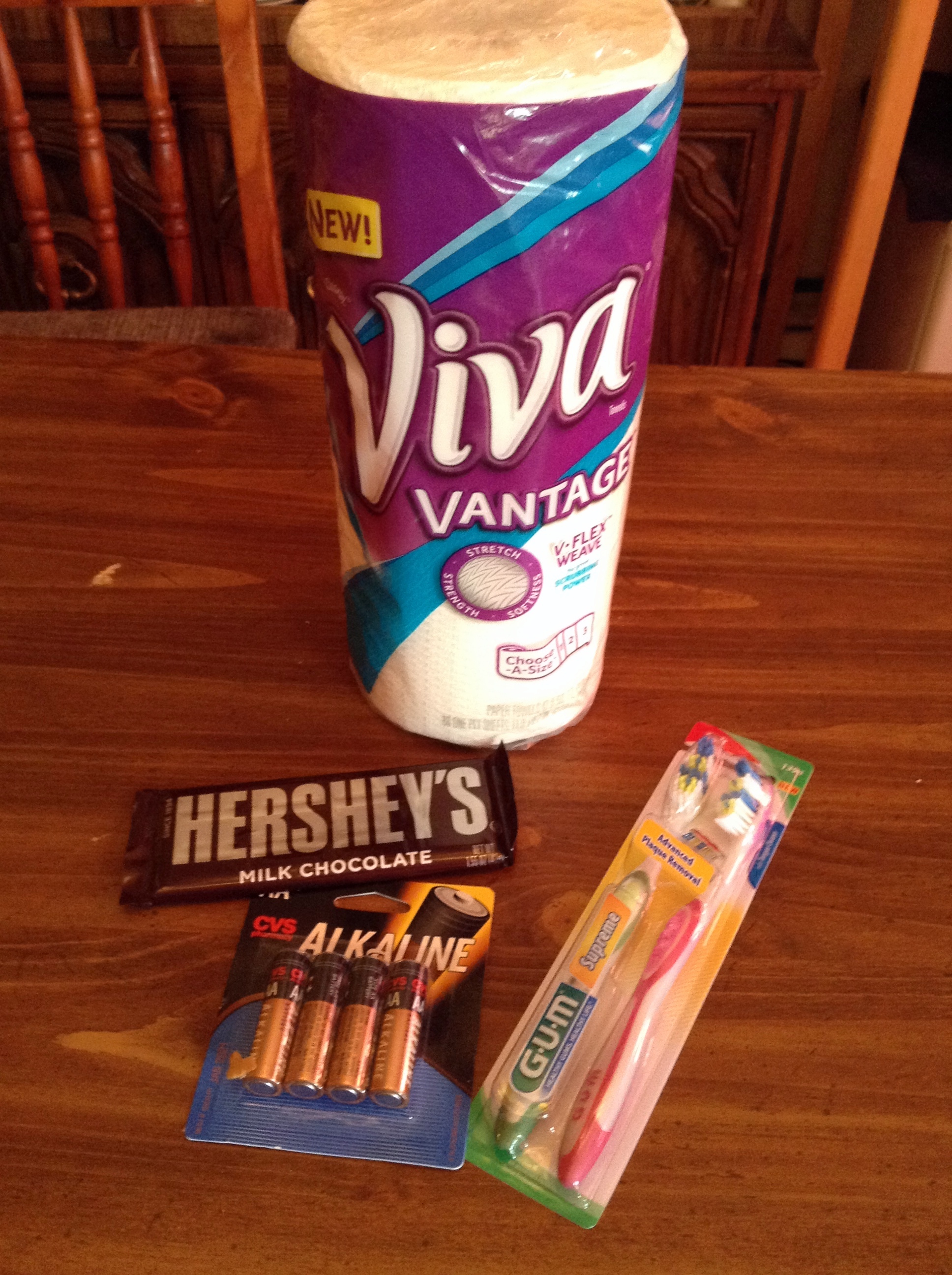 CVS had lots of freebies this holiday. Not quite as many as in past years, but I am not complaining! This year it was paper towels (on sale for $1.99), various chocolate candies (I chose Hershey’s, on sale for $.79), AA batteries (on sale for $4.19), and a set of two toothbrushes (on sale for $2.00). That’s $8.97 of free stuff!