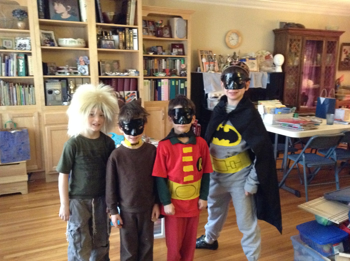 Above is what my boys dressed up as last year – a rocker, Bat Dog, Robin and Batman.