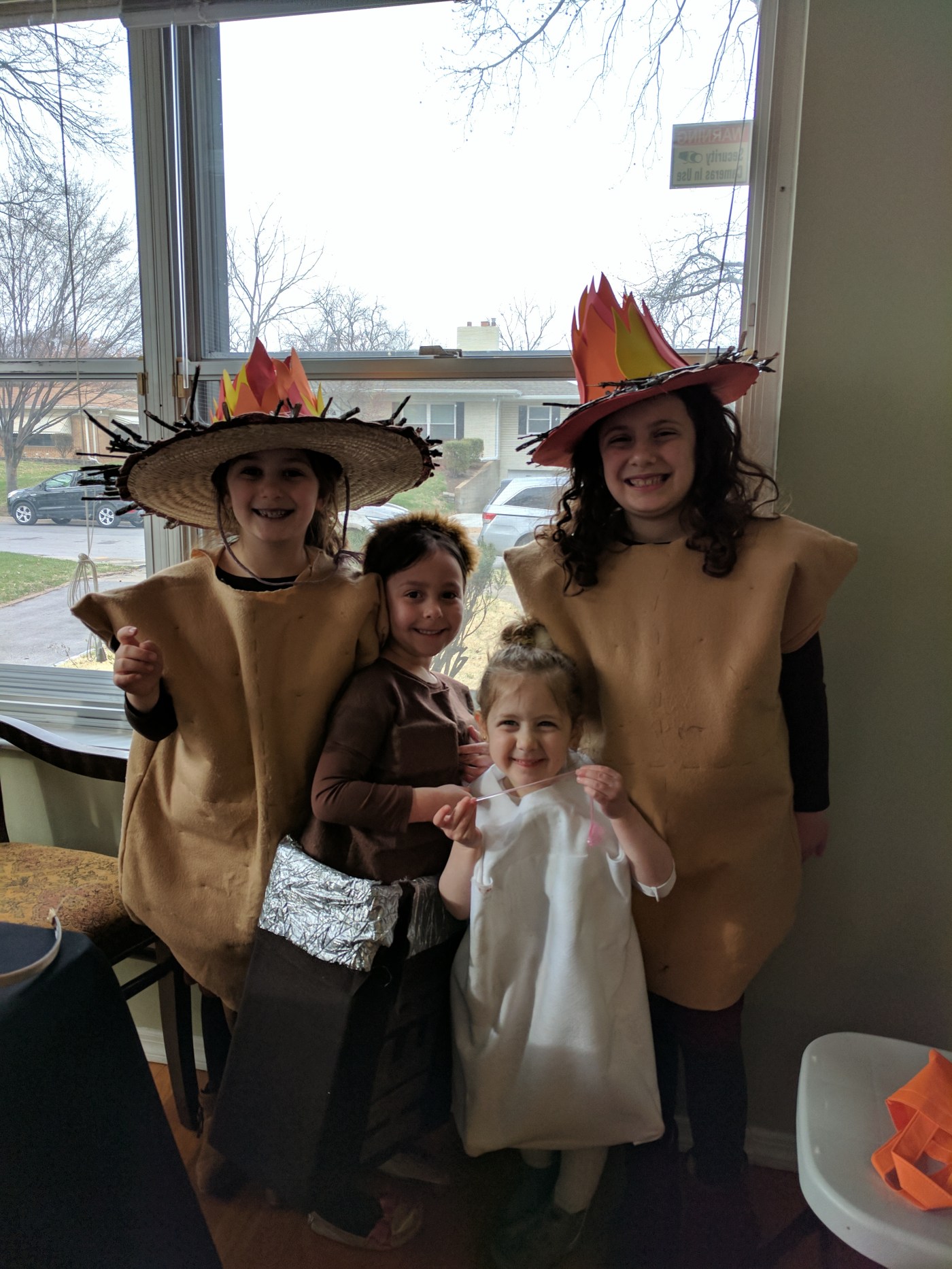 Even though Purim is over, I have one more Purim post to share. Some of my friends were super creative, hard-working, and organized and made matching family costumes and shaloch manos (mishloach manot).