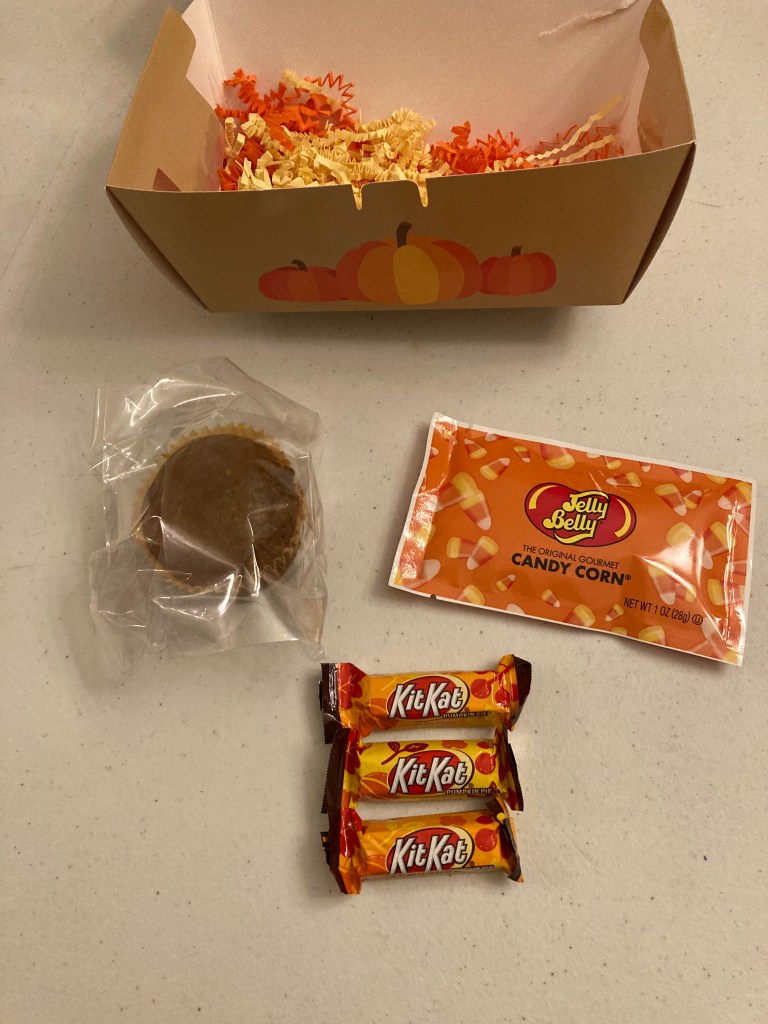 Pilgrims – Our friends Bella & Yosef always come up with a great historical or geographical theme each year. They find great costumes and prepare goodies that coordinate perfectly with them. This year was no different! They were Pilgrims and included fall-themed Kit Kats, a pumpkin muffin, and candy corn jelly beans.