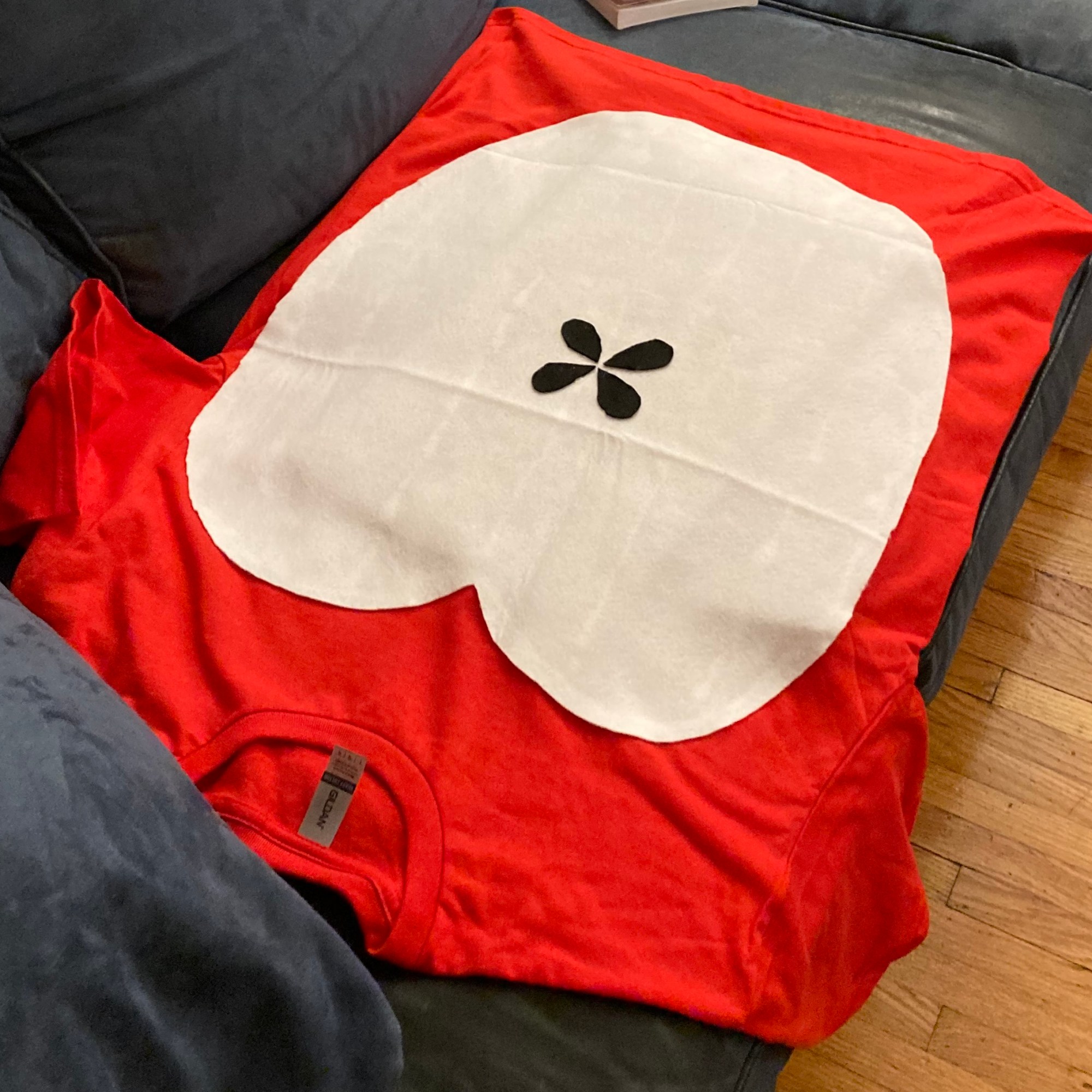 We cut the shapes we wanted and adhered them with fabric glue. Be careful to put cardboard between the layers of your shirts so they don’t stick together!