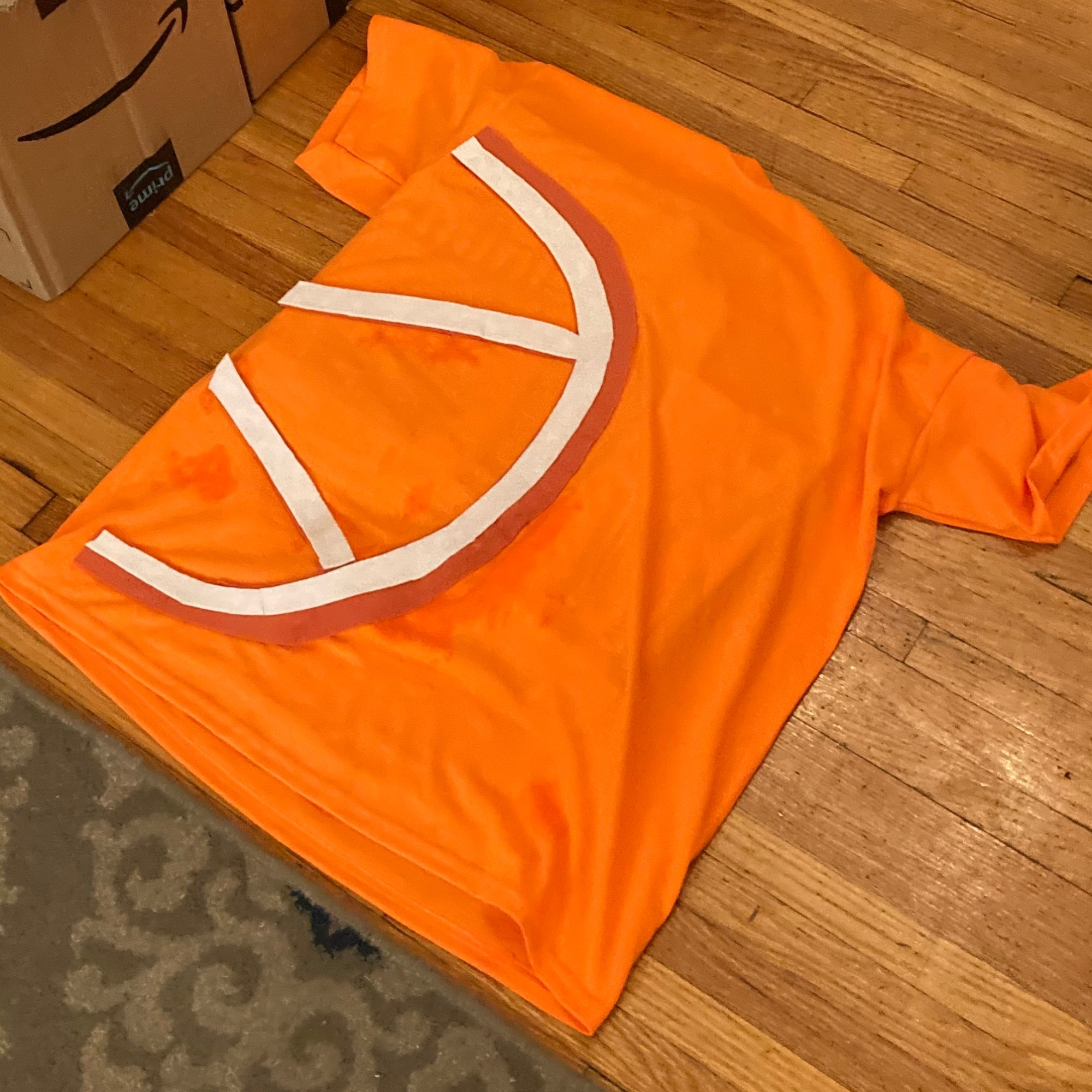 We decided on a fruit theme for last year. We could not find any directions on how to make these costumes, but I did find a photo of another group that also chose this theme. We replicated their idea the best we could. Here is how we did it: