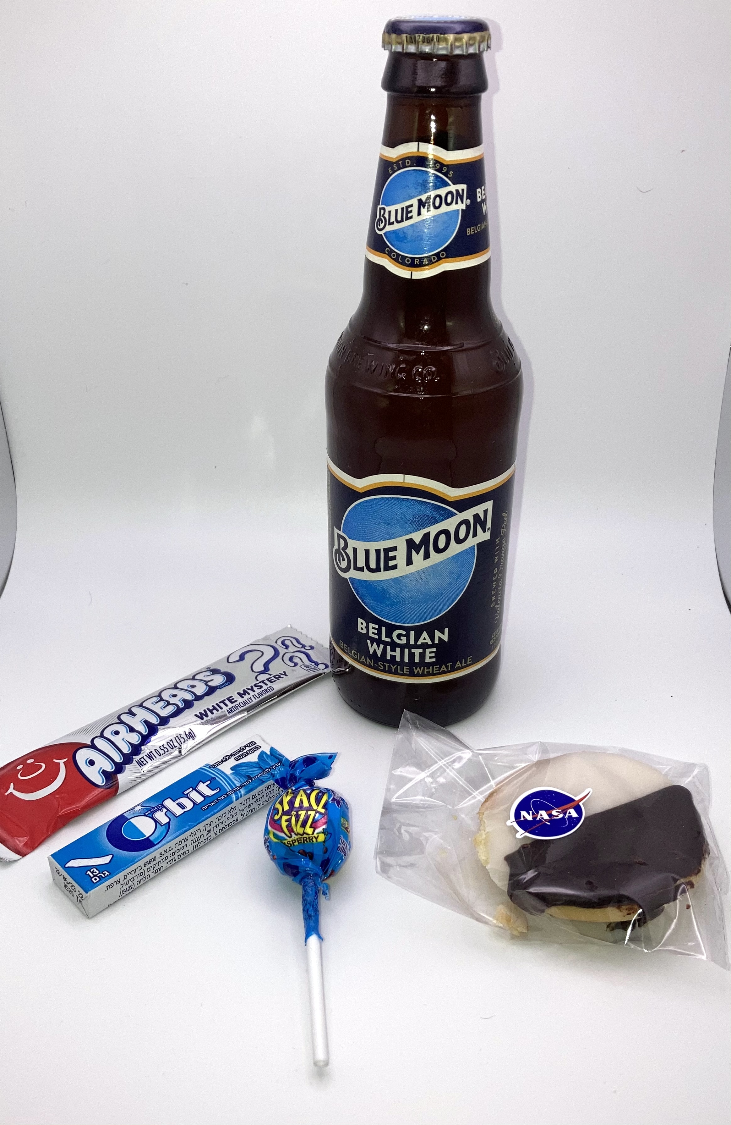 The moon – One of my students’ parents did a moon theme with Airheads candy, Orbit gum, a Space Fizz lollipop, a half moon cookie, and Blue Moon beer. They packaged it in a cute pencil bag.