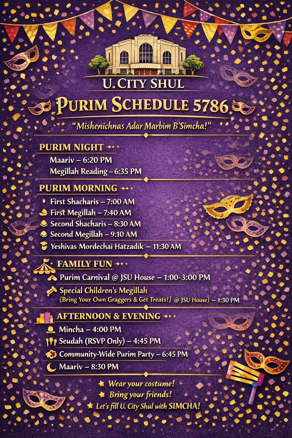 Shul Purim Fliers: